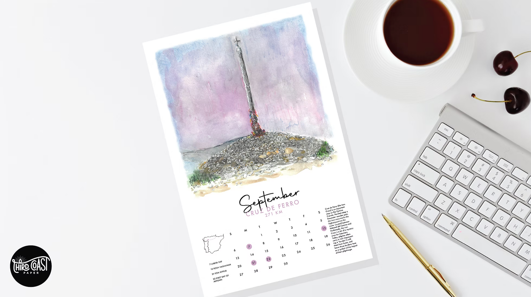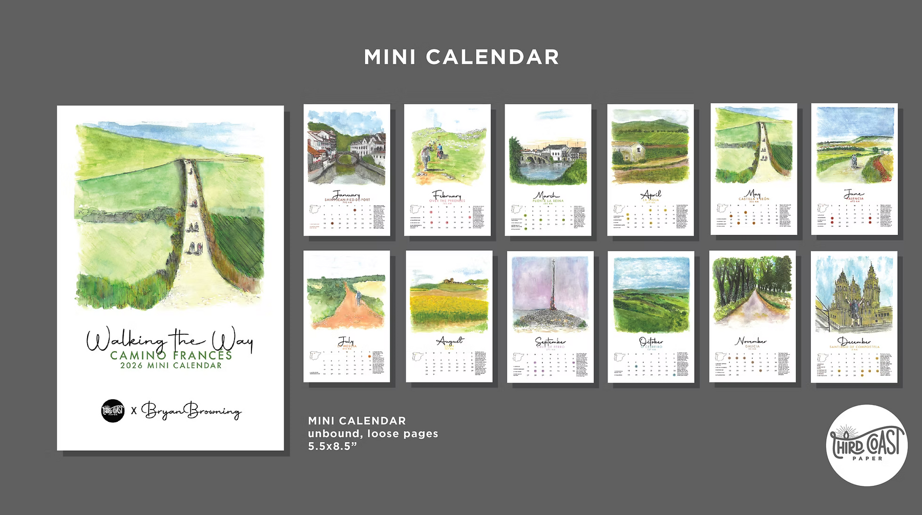 Our favorite local watercolorist, Bryan Browning has taken a trip of a lifetime to hike The Camino de Santiago. He painted his favorite scenes from the trip and put it together in a gorgeous write-on wall calendar. This is a perfect gift for someone who has hiked the Camino or intends to someday! Even if you've never heard of The Camino, you can enjoy his beautiful artwork to enjoy. These gorgeous calendars are created in collaboration with Third Coast Paper, an awesome business based in Milwaukee, Wisconsin.