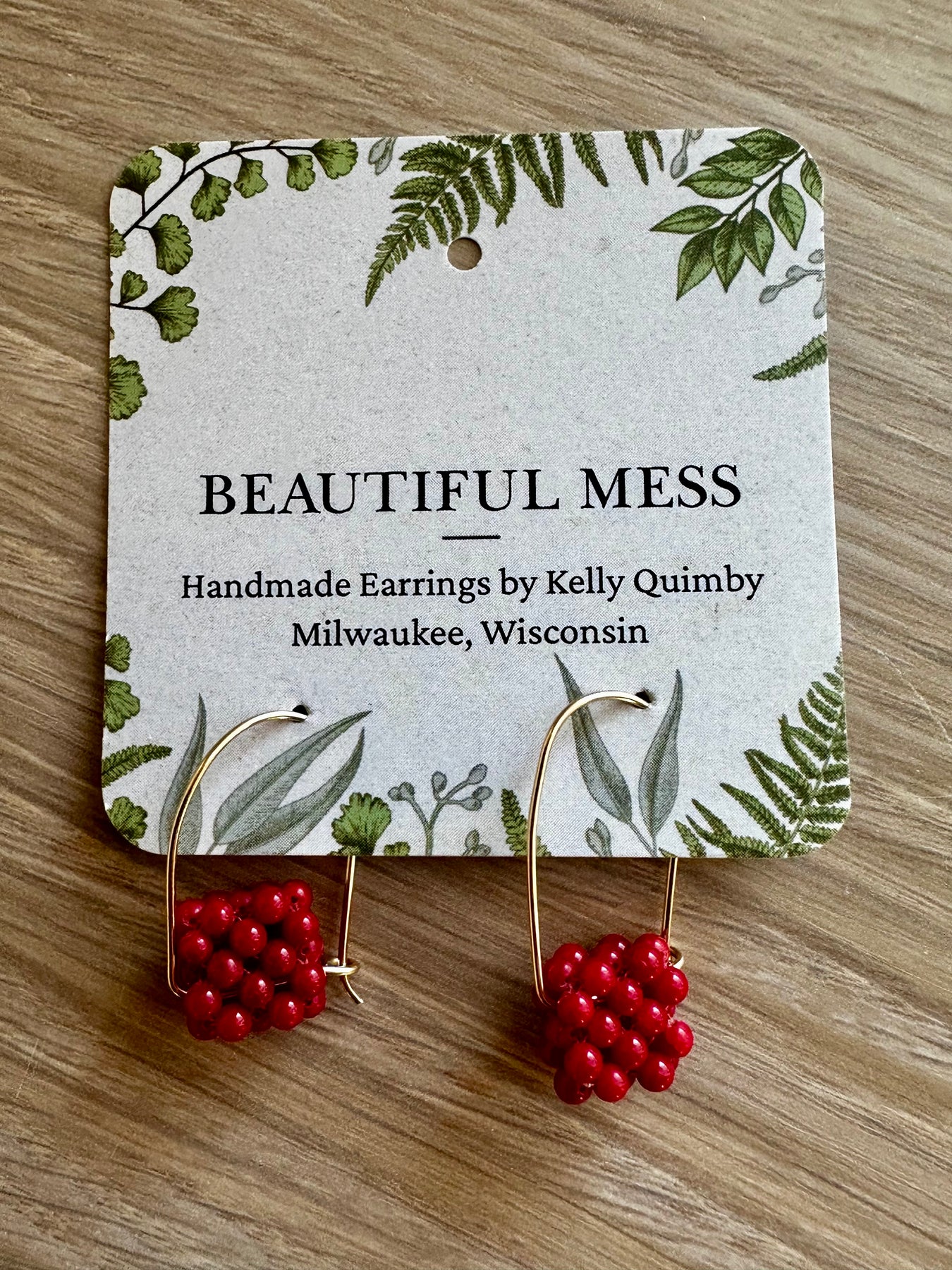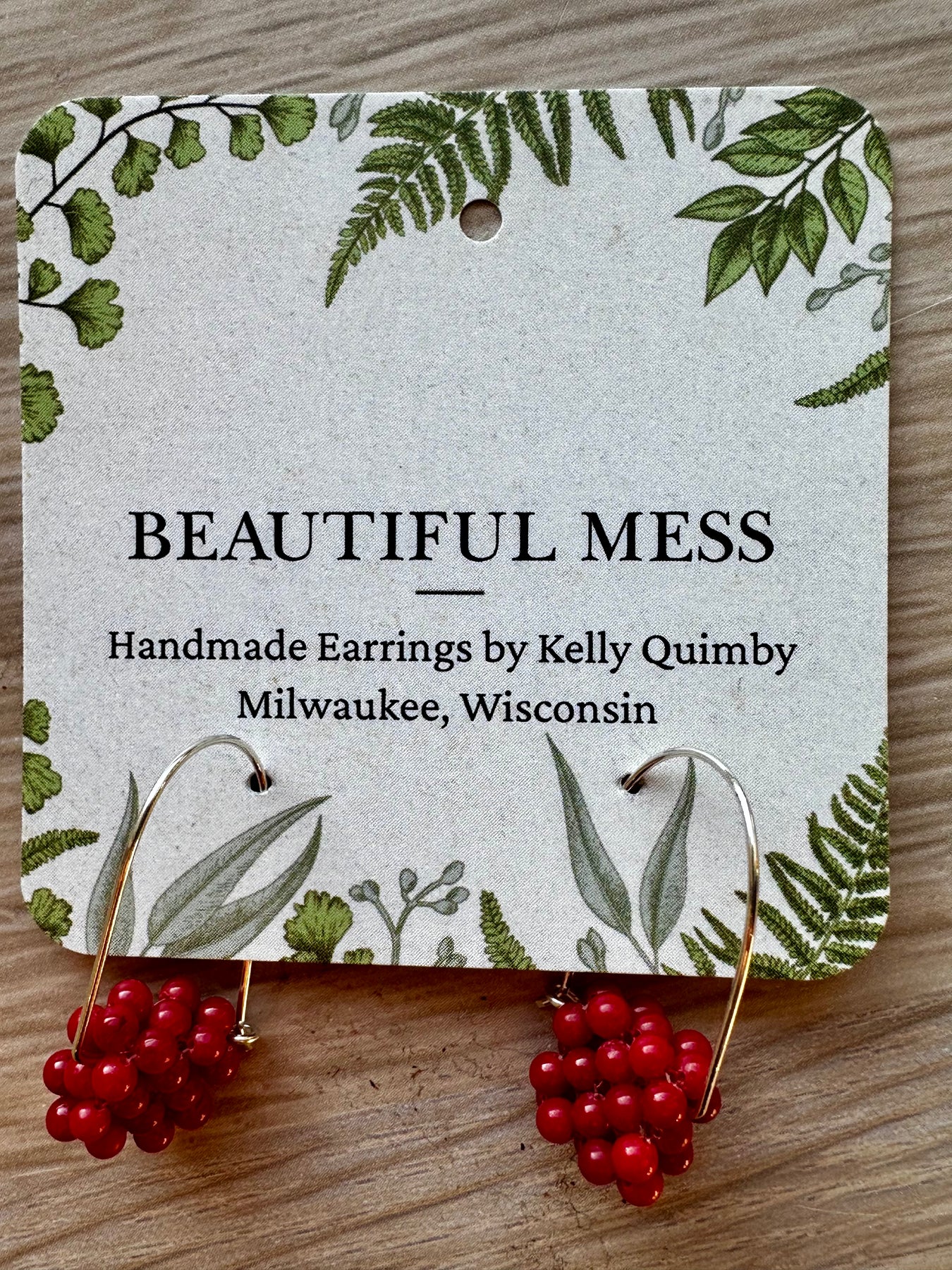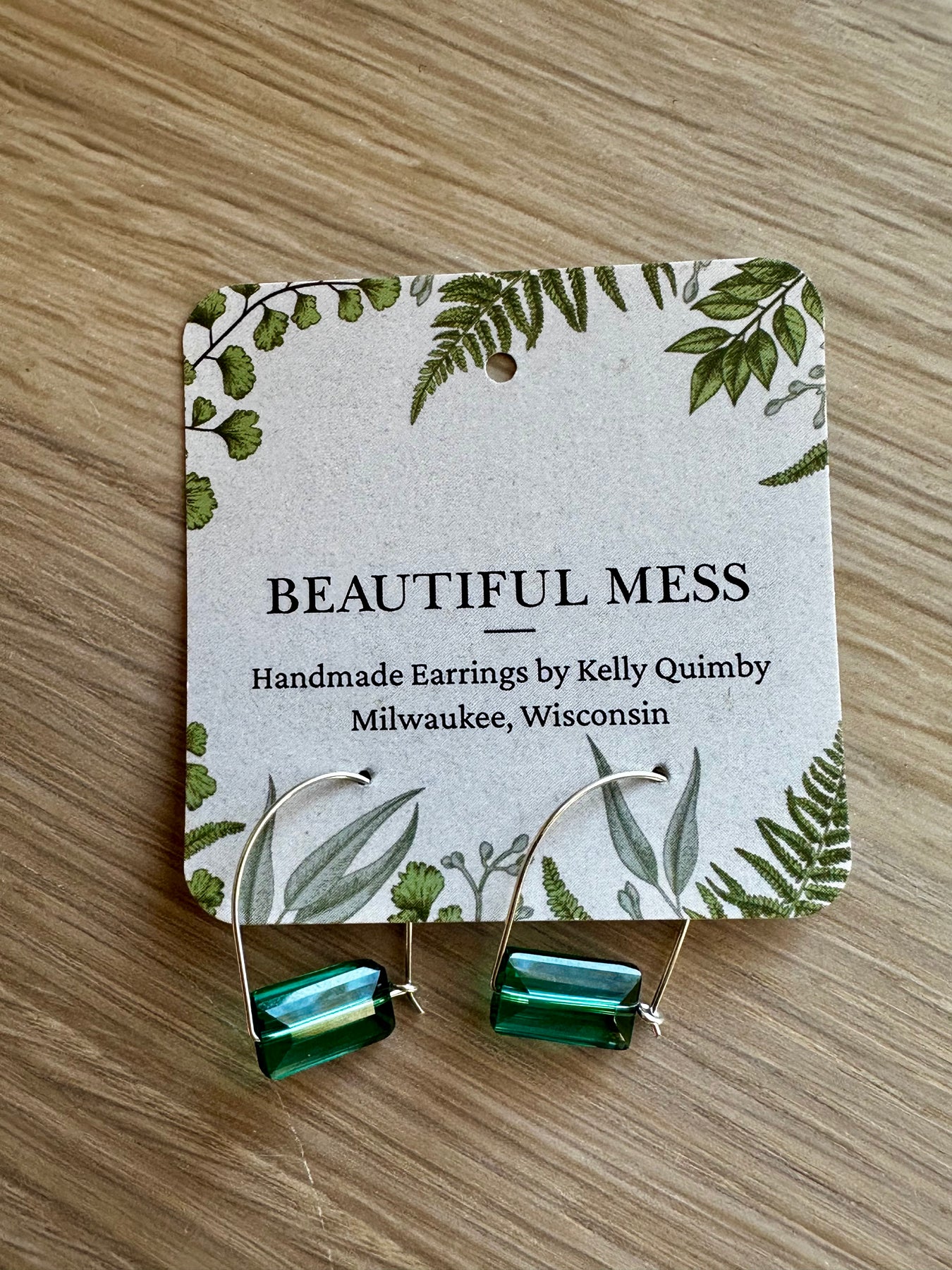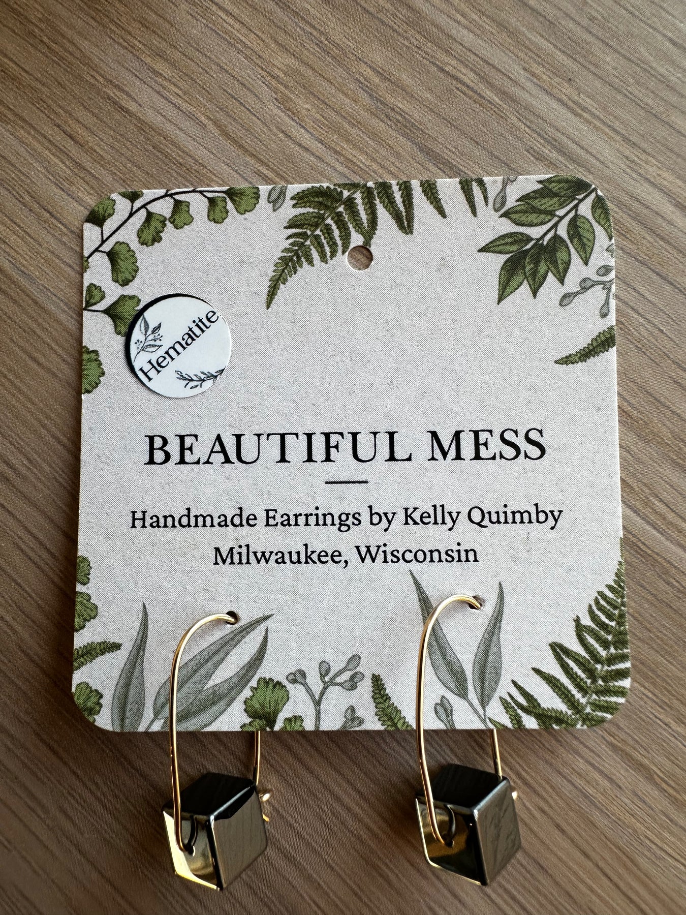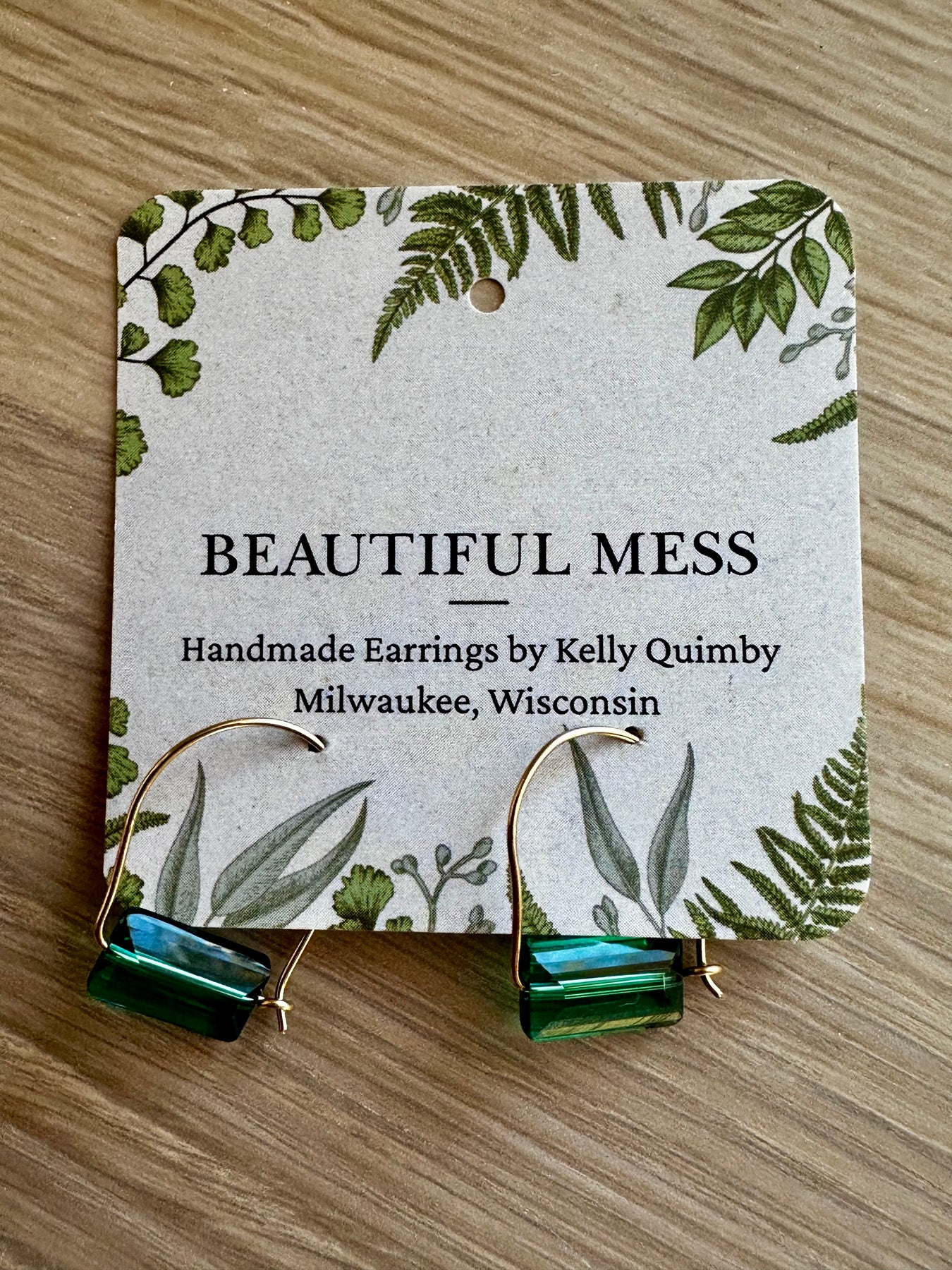 Local maker, Beautiful Mess has created some gorgeous earrings for us. They are made of bent gold filled or sterling silver metal and have an easy closure. They have a lovely semi precious stone adornment on them. They are made by hand with love and care for you. They coordinate really well with our bracelets and necklaces in the shop. Brighten your outfit and your mood with a new pair of these beautiful earrings - at the same you are supporting a local maker.