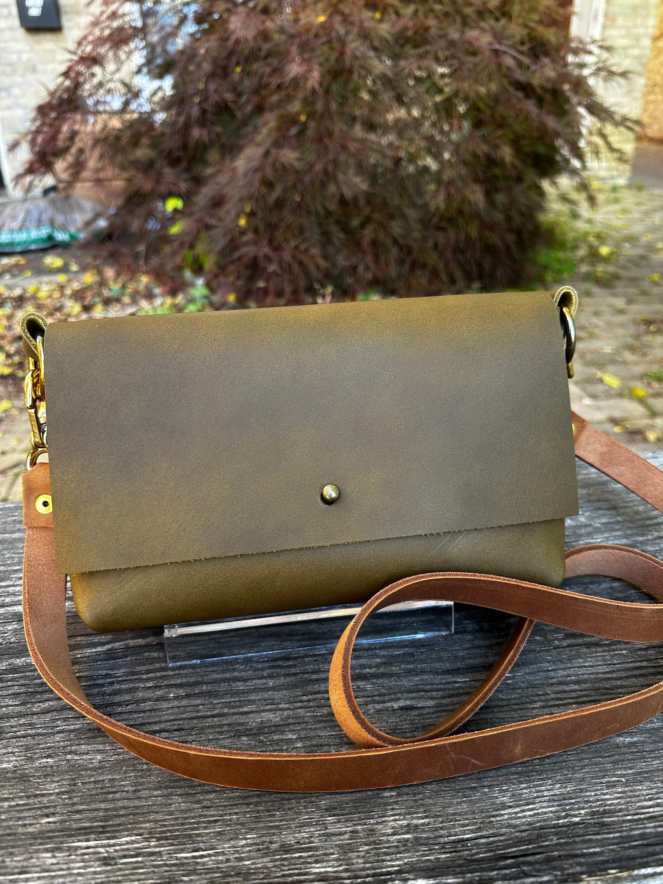 Elevate your everyday look with our handmade Foldover Crossbody Bag! Crafted locally with high-quality leather, it's the perfect purse for any occasion. Experience the luxury and durability of this must-have accessory.